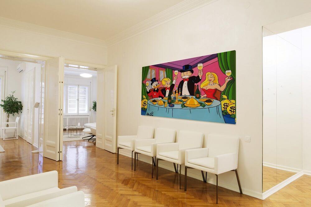 A novelty work of art, such as a graffiti painting from Alec Monopoly, will make the client remember your company. It is also a great talking point or ice breaker. Remember you are decorating for the client you want, so what do you think will catch their unique eye? Explore Alec Monopoly’s full collection here.